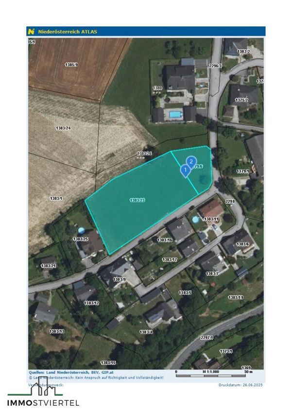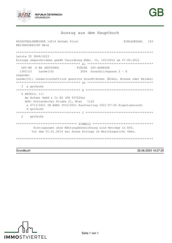 * Grundfläche gesamt 3683 m² ( Gst. Nr. 1383/23 mit 3054 m² und Gst. Nr. 1379/6 mit 629 m² )