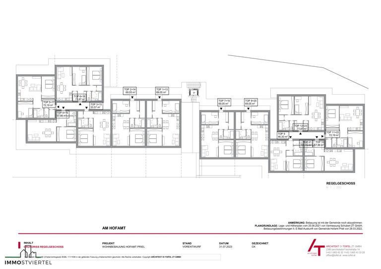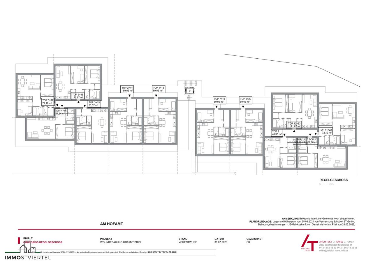 * Baurechtszins wird mit der WNFL. vom Projektentwurf berechnet 2171,31 m² mögliche ges. WNFL. x 0,96 € = € 2084,46.- pro Monat Wertgesichert nach VPI