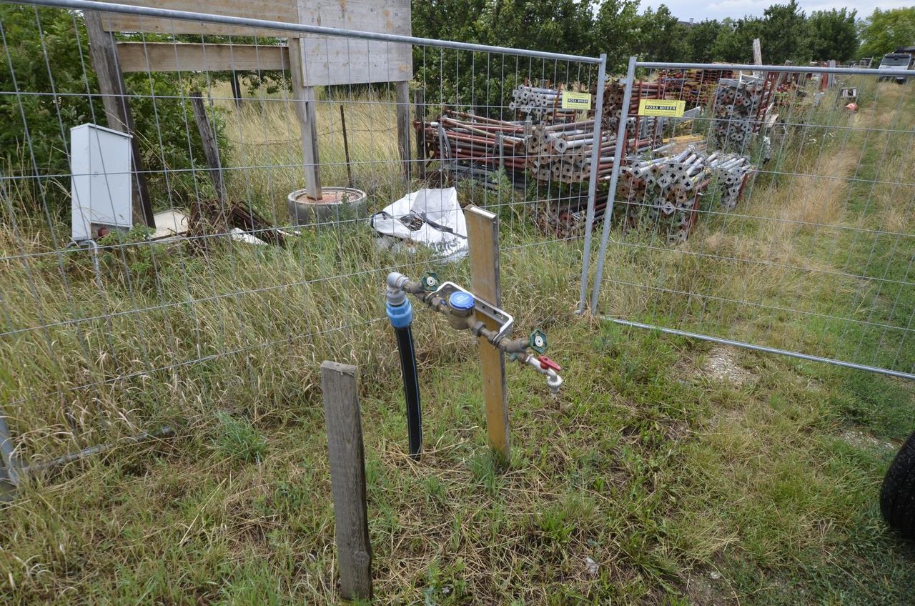 Anschluß von Wasser und Strom (Bauprovisorium).