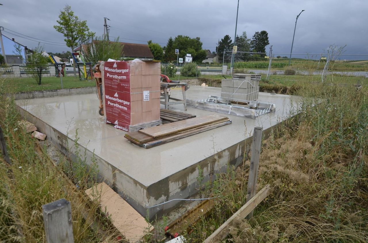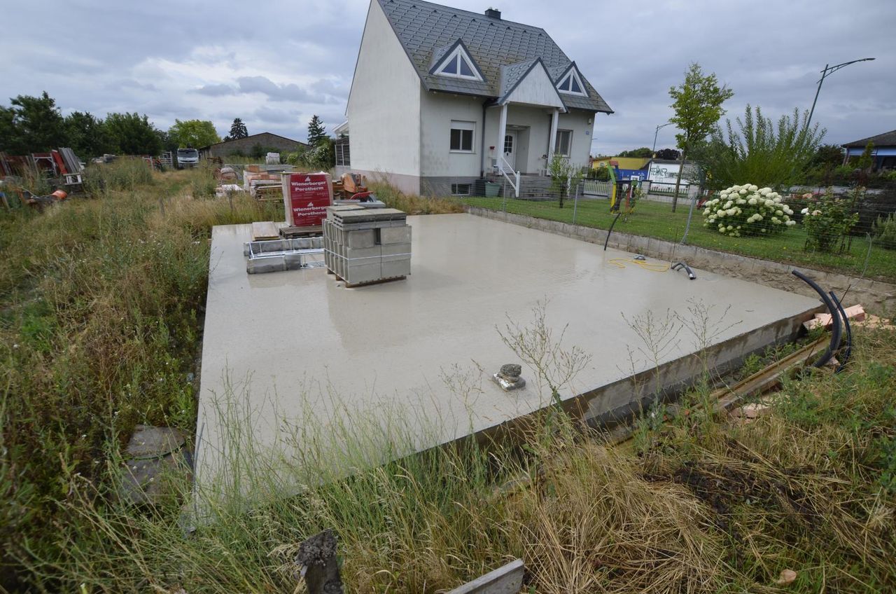 4 Bodenplatten fertiggestellt mit Verrohrung gem. Einreichplan.