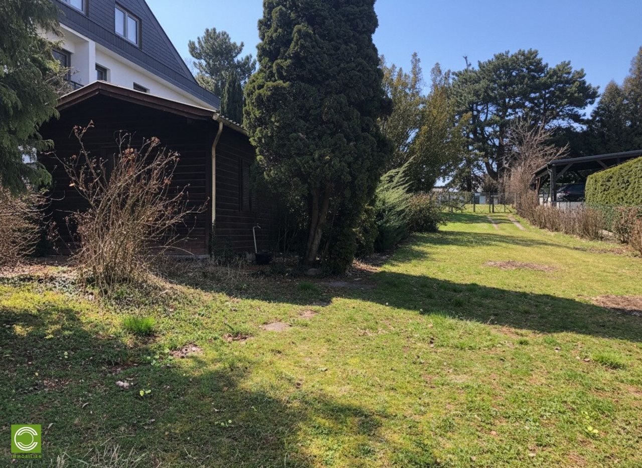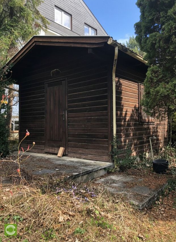 Die vordere Baufluchtlinie befindet sich bei 3 Meter, die hintere Baufluchtlinie bei ca. 34 Meter, jeweils von der Straßenfront gerechnet. Auf dem Grundstück befinden sich eine Gartenhütte aus Holz sowie ein hübscher Altbaumbestand. Das gesamte Grundstück ist eingezäunt und verfügt auch über einen Wasseranschluss. Am unteren Ende des Grundstücks gibt es einen zusätzlichen Ausgang auf einen Gehweg, dahinter befindet sich die Lärmschutzwand zur A21.