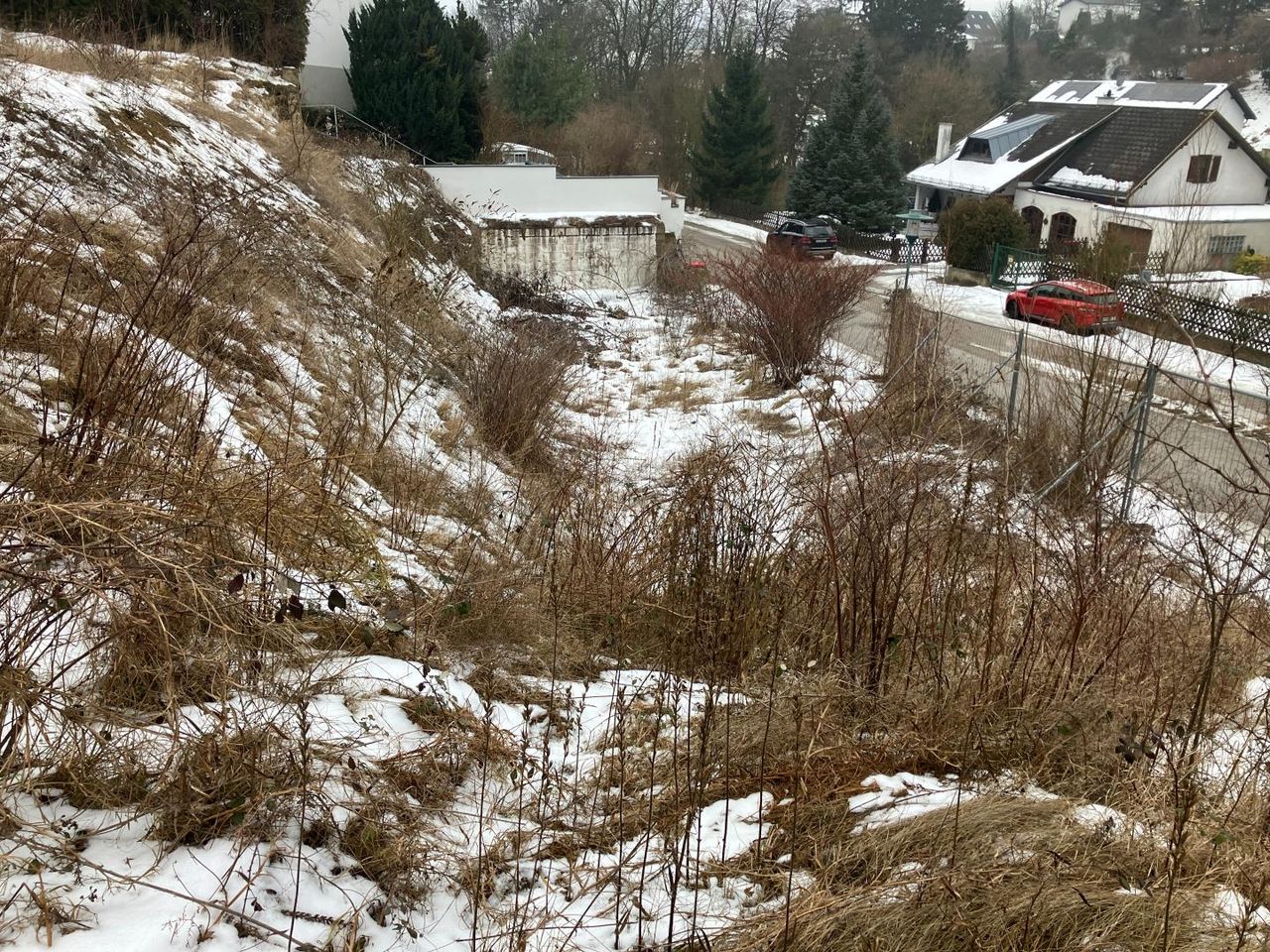 Grundstück mit 1206 m², geräumt von Althaus, Das Grundstück ist auf 3 Terrassen gegliedert, Aus- und Weitsicht gegeben.