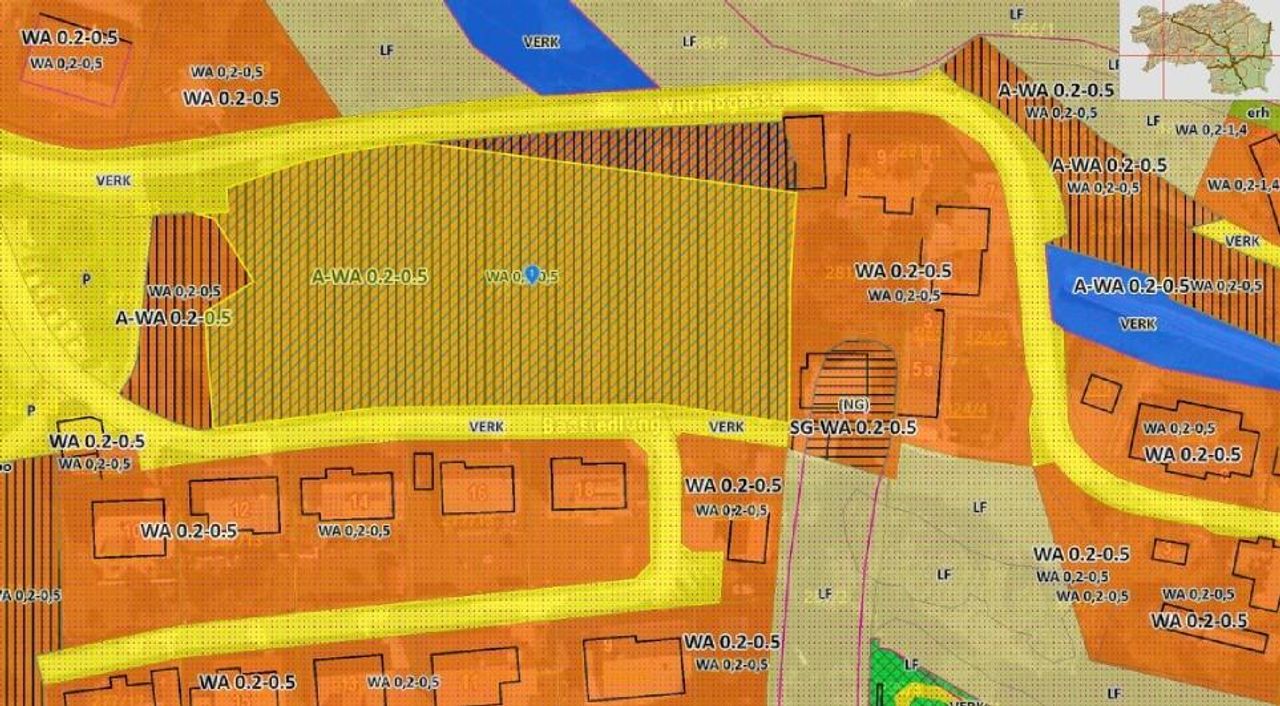 Bebauungsdichte: WA 0,2 – 0,5 Aufschließungsgebiet