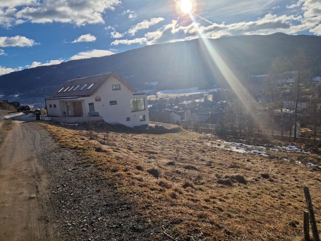 Der Baugrund befindet sich in der Feldnersiedlung mit direktem Blick auf den gegenüberliegenden Kreischberg.