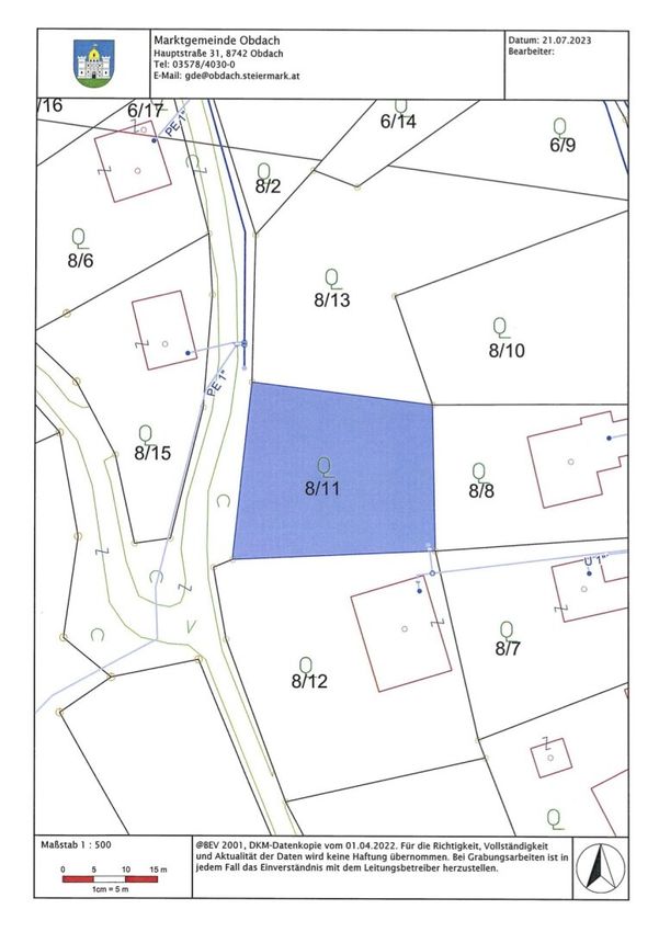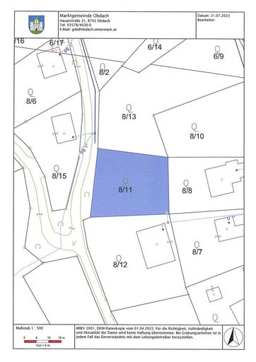 Grundstück und Erschließung • Grundstücksfläche 801 m2 • Ganzjährig sehr gut erreichbar • Wasser, Kanal und Strom am Grundstück bzw. an der Grundstücksgrenze vorhanden