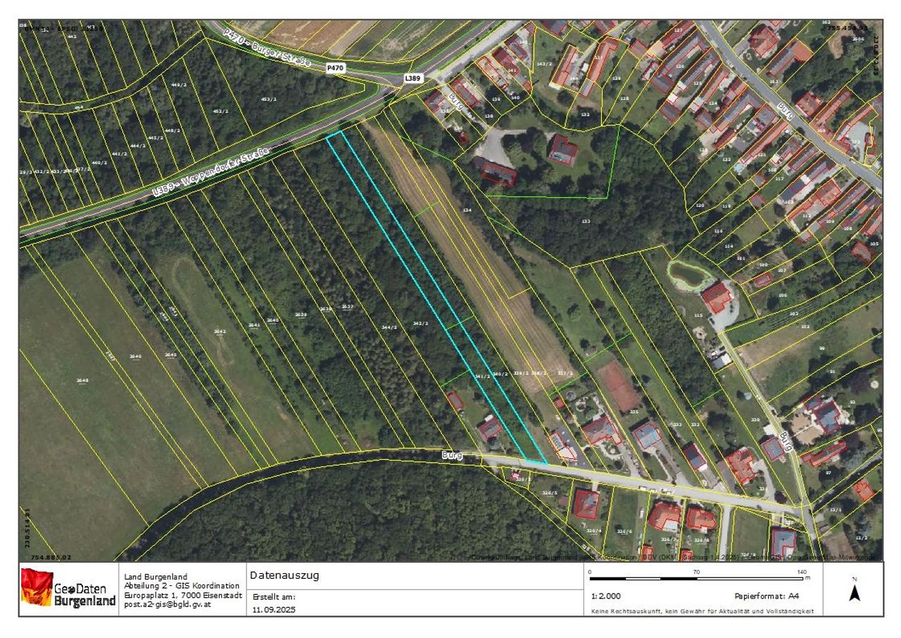 Wunderschönes Baugrundstück in Burg im Südburgenland In der idyllischen Gemeinde Burg im Südburgenland gelangt dieses attraktive Grundstück mit einer Gesamtfläche von 2.777 m² zum Verkauf. Die Liegenschaft überzeugt durch ihre vielseitige Nutzungsmöglichkeit und die naturnahe Lage. Das Grundstück gliedert sich in drei Widmungen: Bauland-Dorf (ca. 533 m²) Bauland-Wohngebiet (ca. 589 m²) Grünfläche mit kleinem Waldanteil (ca. 1.655 m²) Mit einer Länge von etwa 257 Metern und einer durchschnittlichen Breite von ca. 15 Metern bietet das Grundstück interessante Gestaltungsmöglichkeiten. Anschlüsse: Kanal, Strom und Wasser befinden sich direkt an der Grundstücksgrenze nähe. Zufahrt: Die Erschließung erfolgt bequem über eine Gemeindestraße sowie alternativ...
