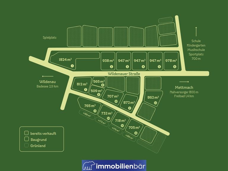 In attraktiver Lage in Mettmach entstehen neue Möglichkeiten zum Wohnen und Wohlfühlen: Insgesamt 29 aufgeschlossene Baugrundstücke stehen zum Verkauf – aktuell sind noch 16 Parzellen verfügbar. Die Grundstücke bieten Flächen von ca. 450 bis 1.800 m² und eignen sich perfekt für unterschiedlichste Wohnträume – ob für Familien, Paare oder individuelle Bauprojekte.