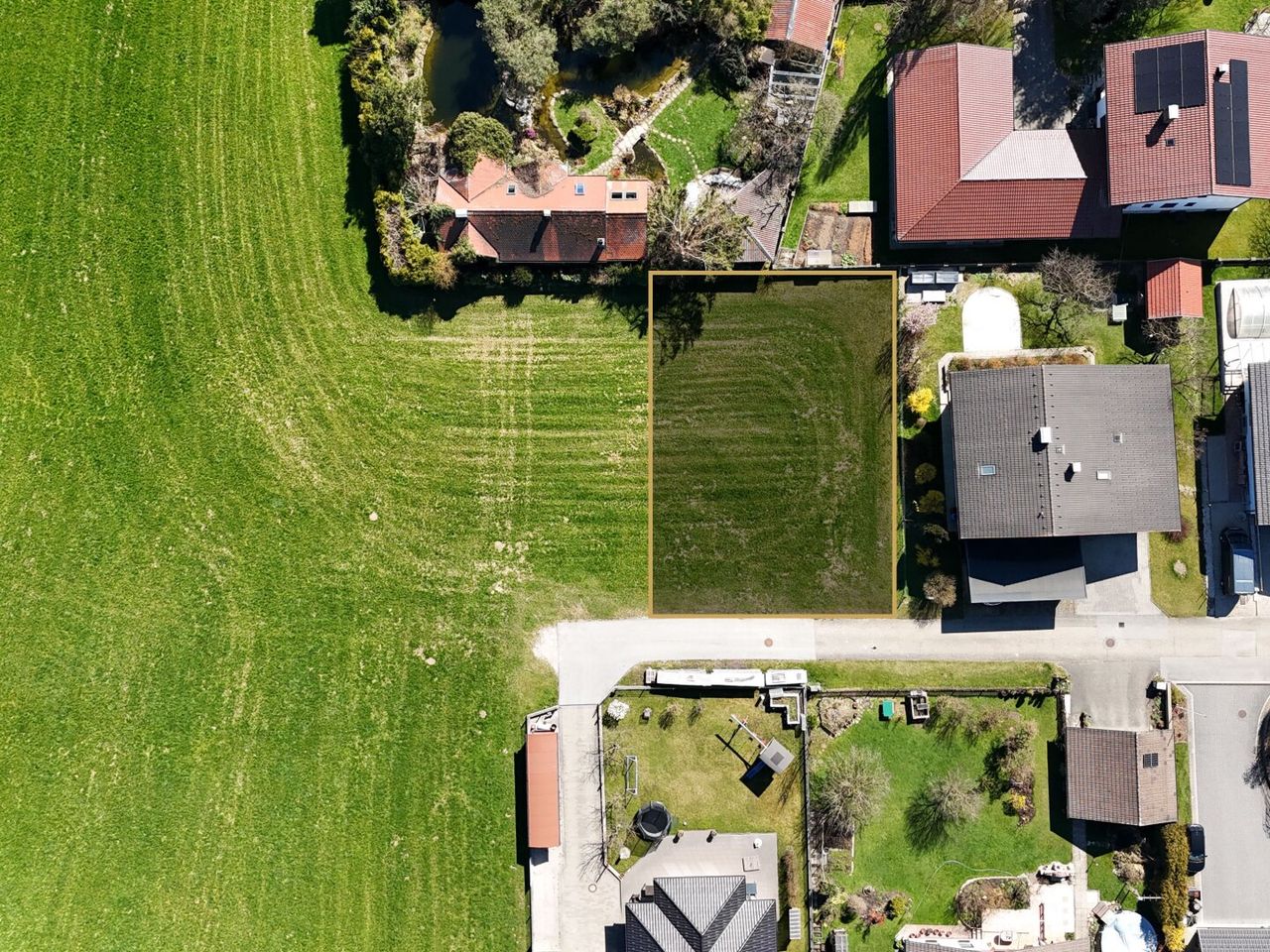 In einer kleinen Einfamilienhaussiedlung, umgeben von Grünland, stehen aktuell zwei nebeneinanderliegende Baugrundstücke für Familien zur Verfügung. Baugrund West umfasst ca. 681 m² & Baugrund Ost ca. 651 m². Ein ideales Grundstück für Familien, die Ruhe im Grünen suchen und dennoch die Nähe zur Stadt Salzburg schätzen. Das Grundstück ist voll erschlossen – Kanal, Wasser und Strom liegen bereits am Grundstück. Neben Wiesen und einer kleinen gewachsenen Siedlung entsteht hier ein ruhiger Kraftplatz für Ihre Familie.