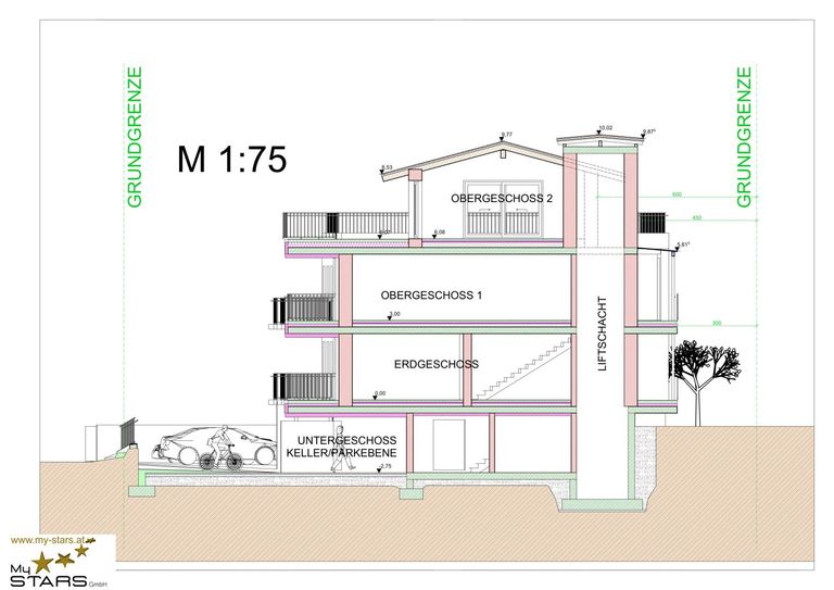 Der beigefügte Plan für den Neubau einer Wohnanlage mit 7 Wohnungen wurde mit dem Bauamt abgestimmt und ist so voraussichtlich bewilligungsfähig.