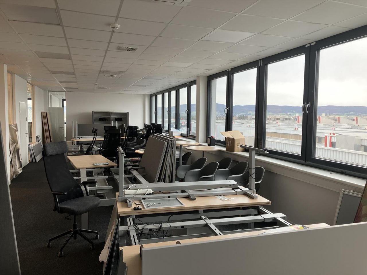 Derzeit sind 2 x 1000 m2 Halle -eventuell ausweitbar auf 4000 m2 verfügbar pls 377 m2 Büro im Loft und 190 m2 Büro im EG verfügbar.