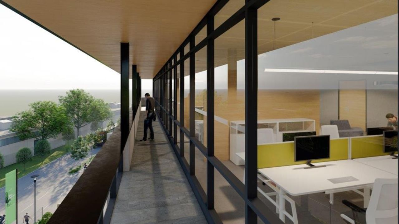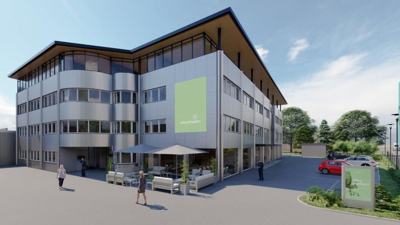 Das Bürogebäude wurde neu gebaut und bietet im EG ca. 800 m2