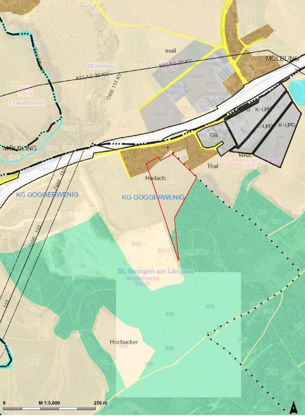 Die Ackerfläche grenzt direkt an das Siedlungsgebiet Mail-Süd, wobei Teile der Ackerfläche noch in der Widmung "Dorfgebiet" (ca. 600 m²) liegen.