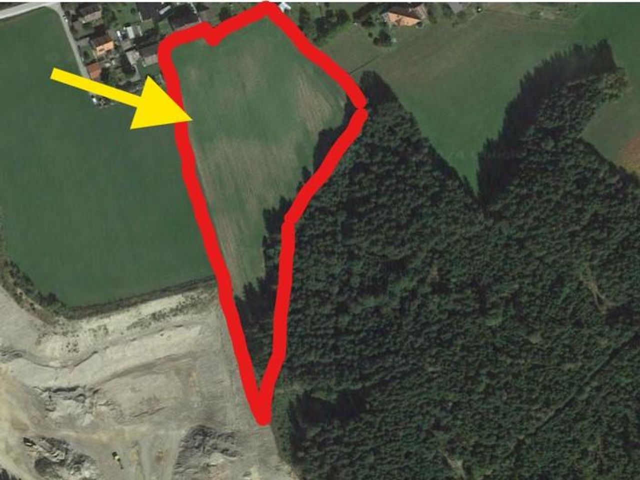 Ebene Ackerfläche (teilweise Dorfgebiet) + kleine Waldparzelle