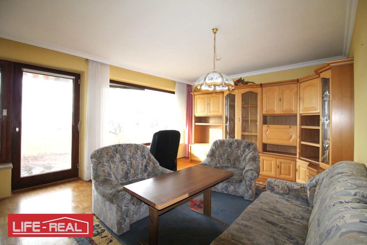 Auf dem baulandgewidmeten Teil des Grundstücks befindet sich ein charmantes, jedoch sanierungsbedürftiges Wohnhaus mit einer Wohnfläche von ca. 170 m². Das Haus ist voll unterkellert und bietet großräumige Gestaltungsmöglichkeiten für Renovierungs- und Modernisierungsmaßnahmen.