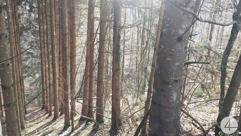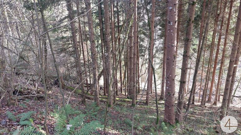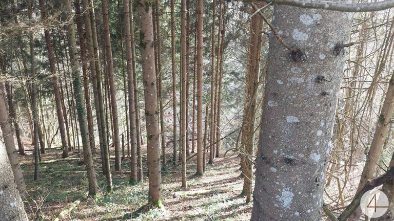 Ca. 8227m² Wald mit Baumbestand und einer kleinen Wiese.