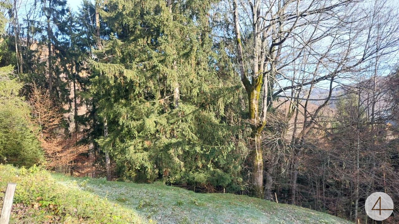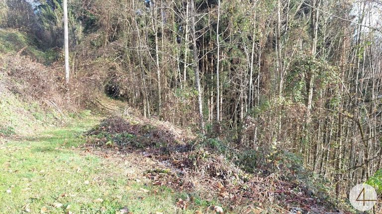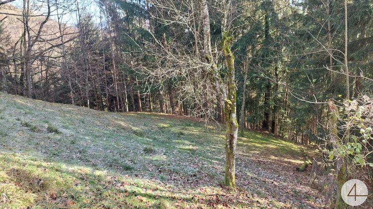 Das Wiesengrundstück ist leicht zu bewirtschaften (730m²). Das Waldgrundstück selbst ist Hanglage, jedoch über einen kleinen Weg zu begehen.