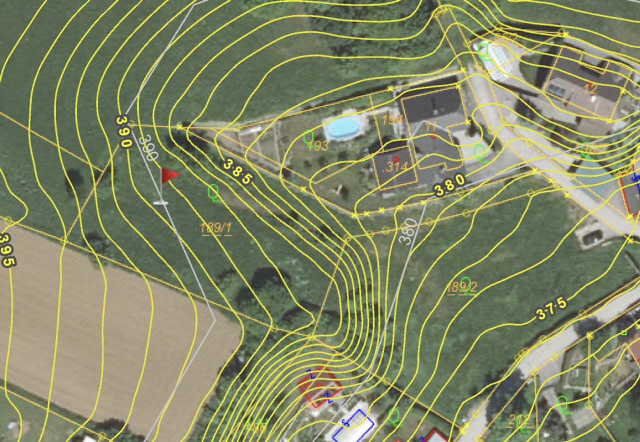 Der bebaubare Teil der Gesamtliegenschaft (693 m2 von 1003 m2 sind bebaubar) weist eine rechteckige Plateauform mit einer mittleren bis starken Hangneigung auf. Das Gefälle verläuft von West nach Ost sowie von Süden nach Norden – eine Topografie, die außergewöhnliche Architekturkonzepte ermöglicht.