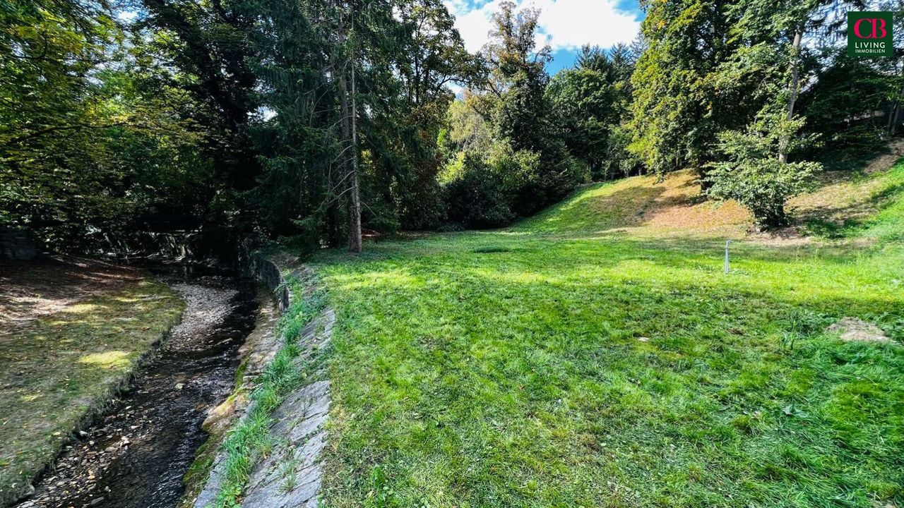 Dieser sonnige und weitgehendst ebene Baugrund am Ende einer Sackgasse ist in dieser Qualität wahrscheinlich der Letzte seiner Art. Das Grundstück ist nahezu quadratisch und zu einem überwiegenden Anteil ebenerdig. Es ist am Ende einer Sackgasse, direkt neben dem Bach gelegen und besticht durch sein parkähnliches Flair.