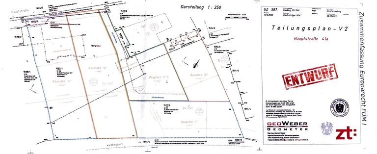 Die neu geschaffene Grundstücksfläche beträgt 2.422 m² und weist eine attraktive Baulandwidmung mit differenzierten Bebauungsmöglichkeiten gemäß Flächenwidmungs- und Bebauungsplan auf.