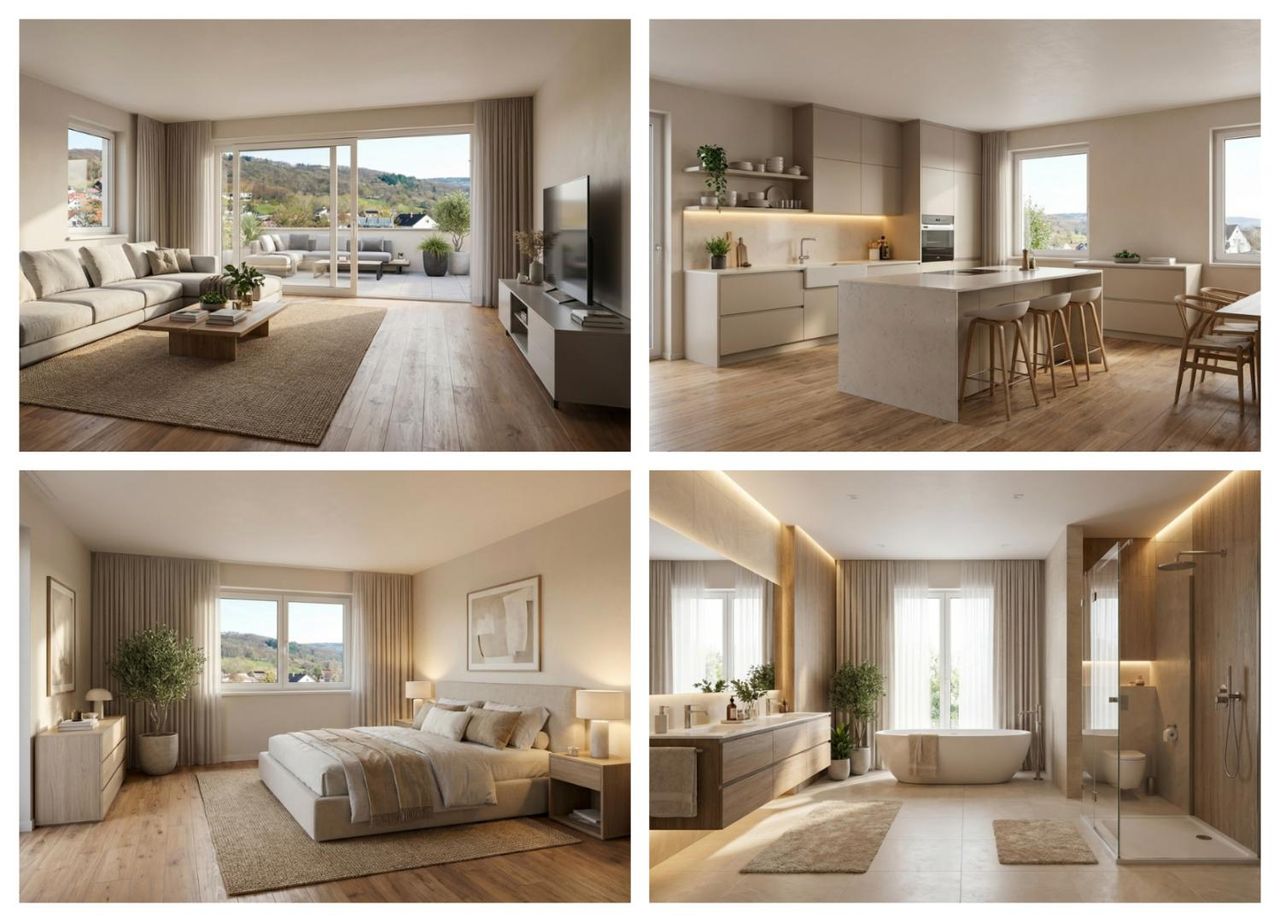 Hinweis: Die im Video und in der Anzeige gezeigten Bilder und Sequenzen sind KI-generiert und stellen keine reale Darstellung der Immobilie dar. Sie dienen ausschließlich zur visuellen Inspiration und ersetzen keine Besichtigung.