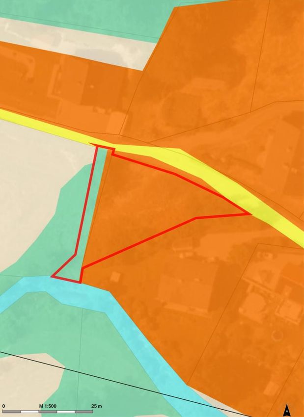 Der obere Bereich vom Grundstück bildet ein natürliches Plateau, dass sich ideal für die Errichtung eines Wohnhauses eignet. Von dort geht das Grundstück in ein Gefälle über. Im unteren Grundstücksareal befindet sich ein vorbeifließender Bach und ermöglicht den Zugang zu einer natürlichen Wasserquelle. Ein seltenes Naturdetail, das diesem Grundstück eine außergewöhnliche Atmosphäre verleiht.