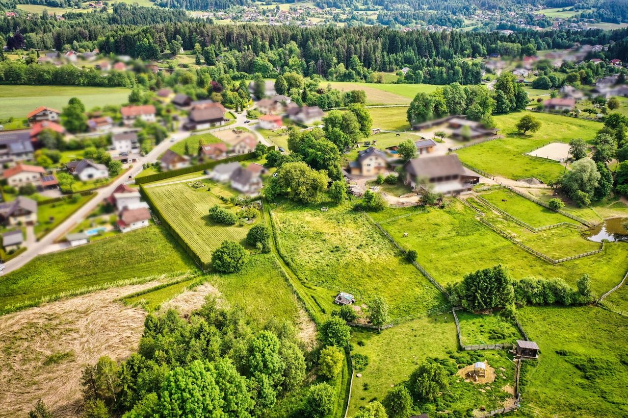 Auf einer Anhöhe mit herrlichem Blick auf die Stadt Villach, die Kärntner Berge, wie z.B. der Gerlitzen, dem Dobratsch und dem Mittagskogel, befindet sich das Grundstück in ruhiger Sonnenlage. Über eine öffentliche Zufahrt gelangt man auf den nördlichen Teil, der als Bauland Dorfgebiet gewidmet ist (1.130 m²). Nach Süden hin erstreckt sich die Liegenschaft und bietet genügend Platz für Tierhaltung. Derzeit sind hier Pferde untergebracht. In diesem Bereich befindet sich auch eine Quelle. Alle für das tägliche Leben notwendigen Infrastruktureinrichtungen erreichen Sie innerhalb von 1 km. Ideal ist auch die Autobahnanbindung - großes Plus: man hört und sieht sie vom Grundstück aus nicht!!!