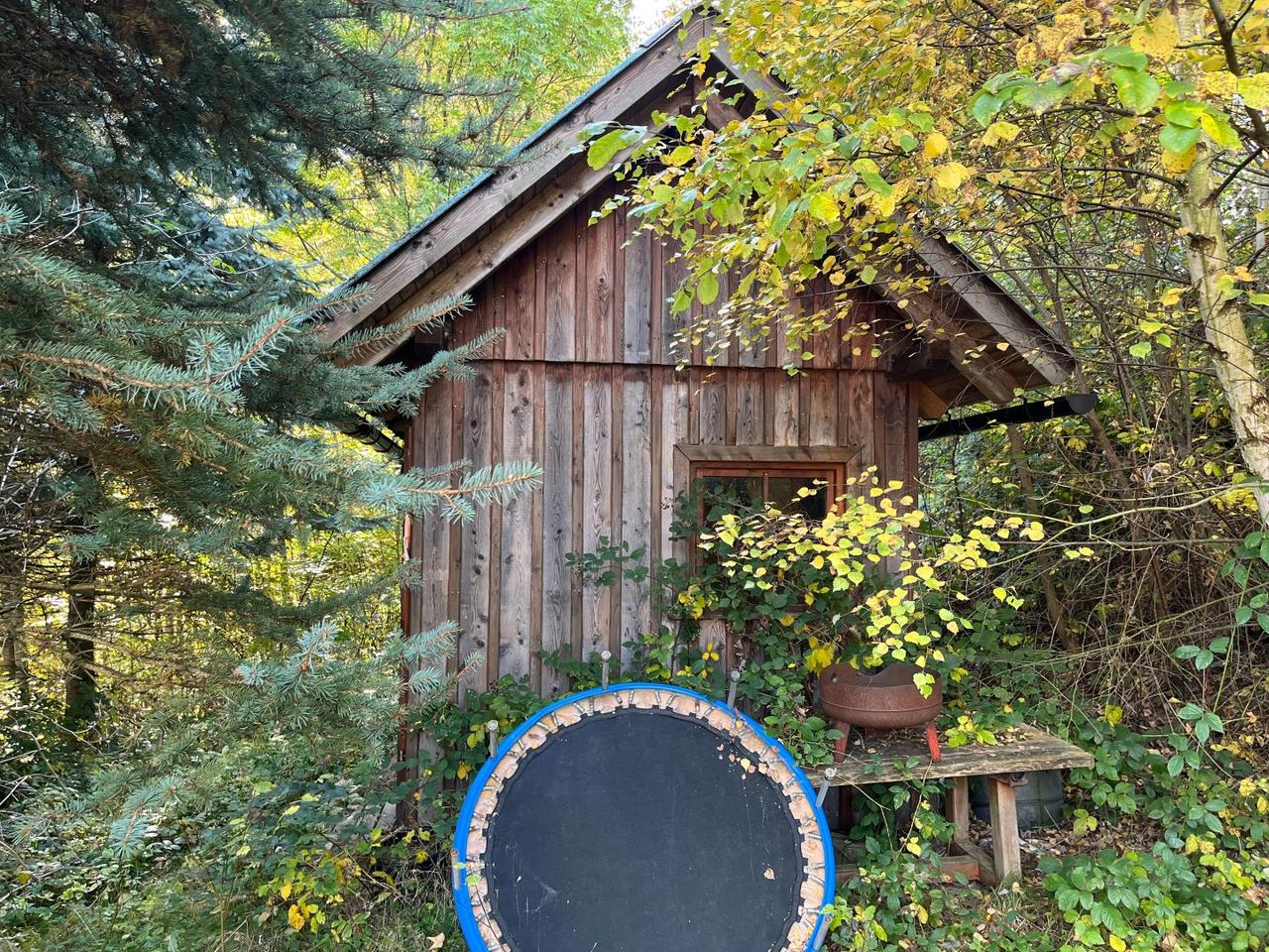 Es erwartet Sie bereits eine kleine Gartenhütte im Jungwald.