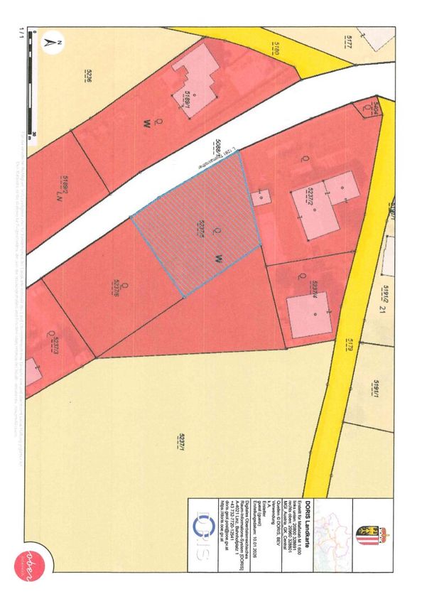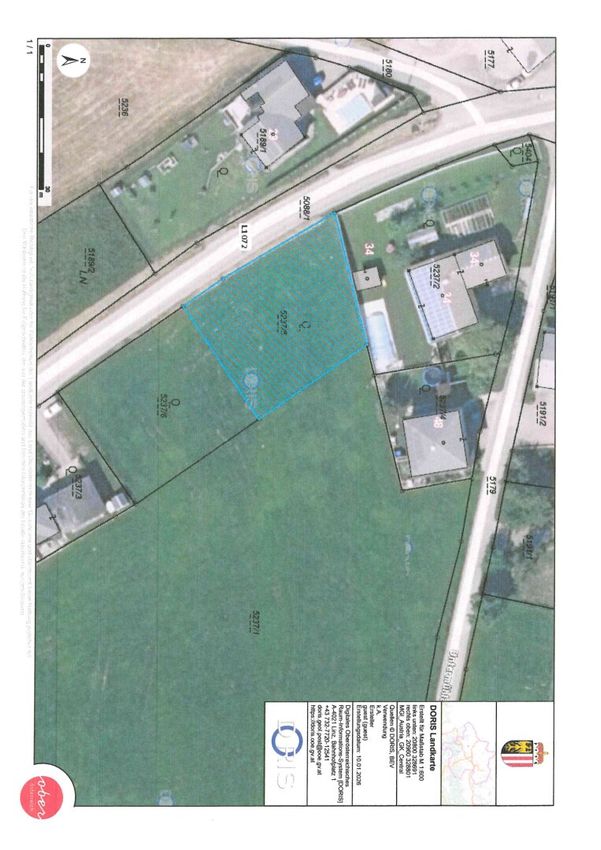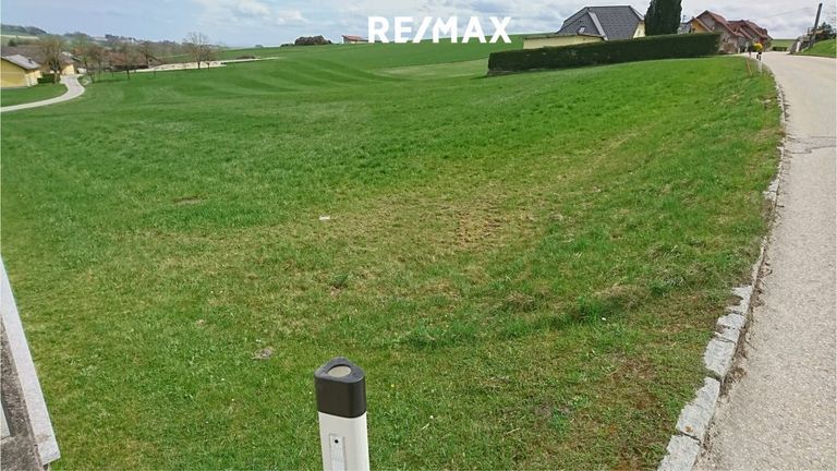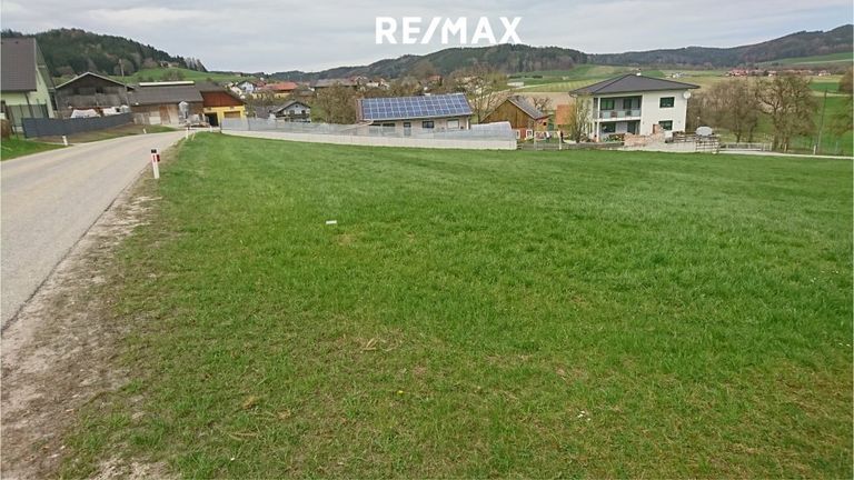 Der Bauplatz liegt direkt an der Landesstraße und bietet dennoch eine zentral gelegene, gut erreichbare Wohnlage.