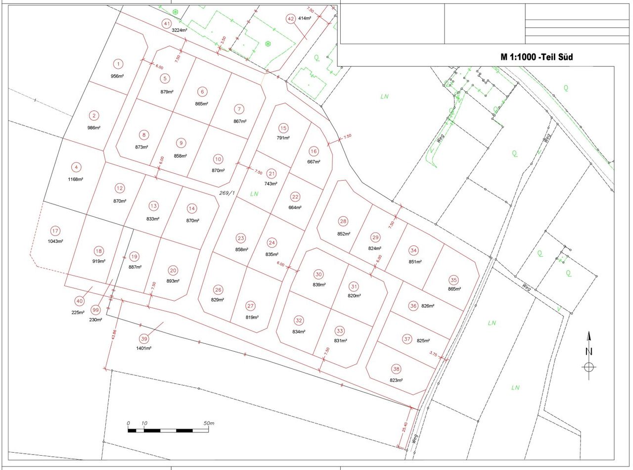 Projektgröße: Ca. 35.000 m2 Gesamtareal mit 38 Baugrundstücken, die flexibel kombinierbar sind und eine effiziente Umsetzung in mehreren Bauabschnitten ermöglichen.