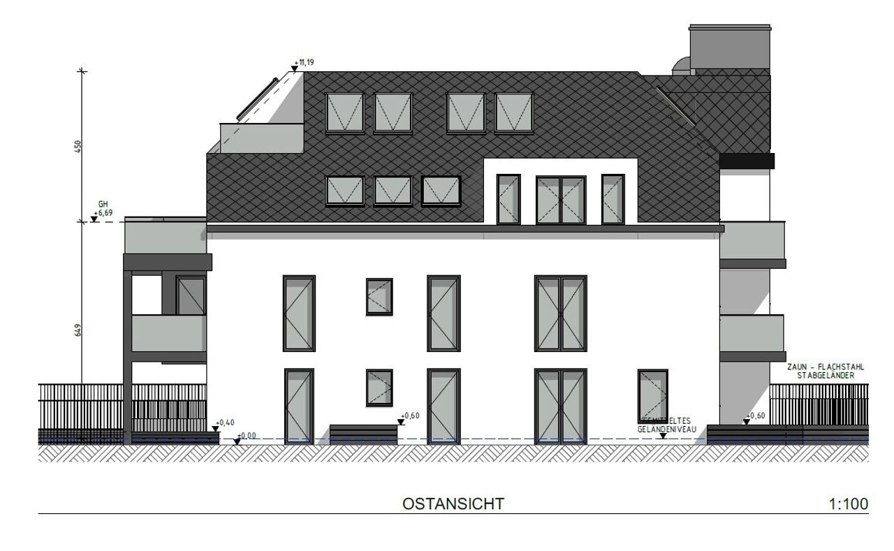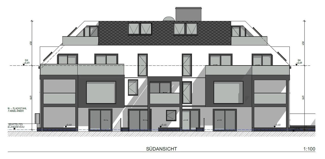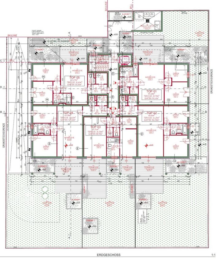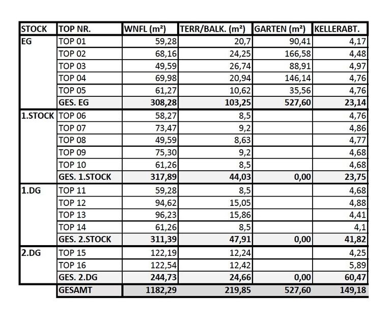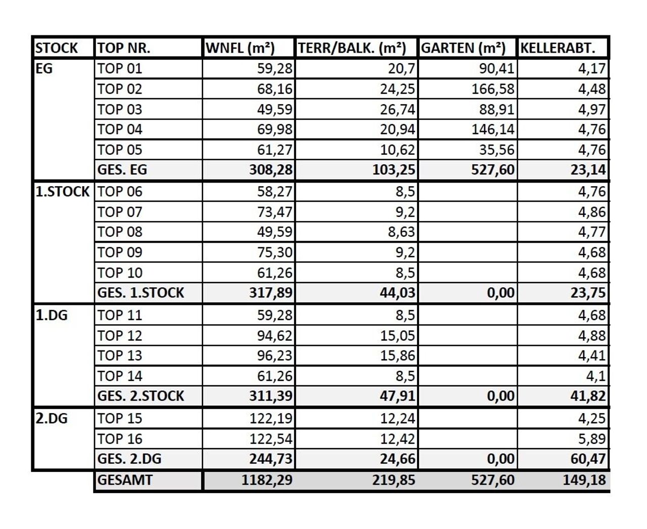 Es verfügt über bewilligte 4 Etagen und einem Keller mit Tiefgarage mit Kellerabteilen, im Erdgeschoss verfügen die Einheiten auch über jeweils eine Terrasse und einem Garten.