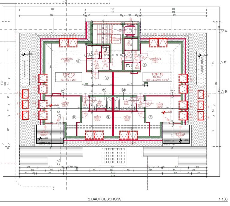 Bewilligtes Projekt mit 16 Wohnungen, Tiefgarage und Gärten - 1320m²