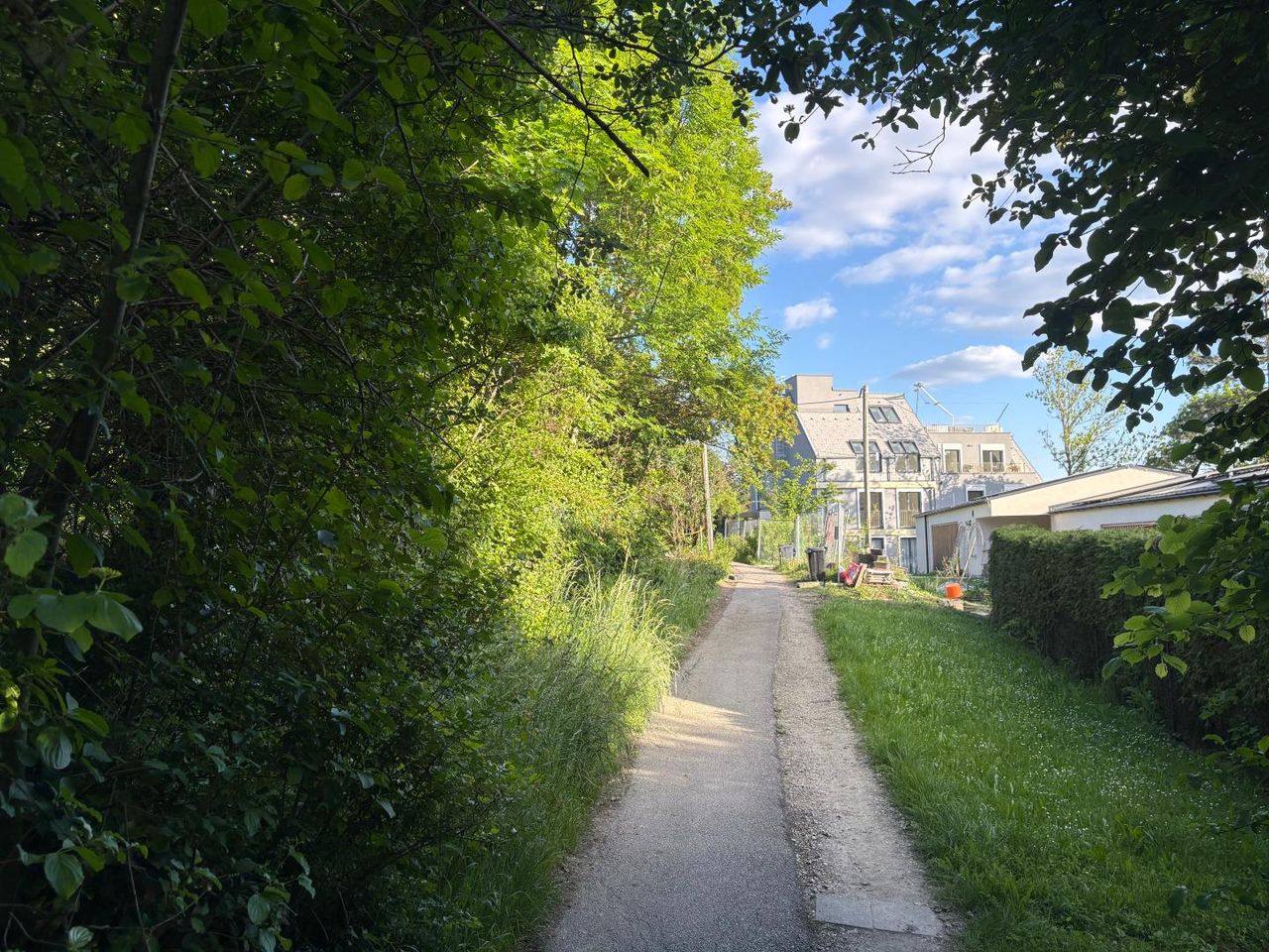 Die Liegenschaft befindet sich an einem kurzen Privatweg zirka 150 m von der nächsten Straße entfernt.