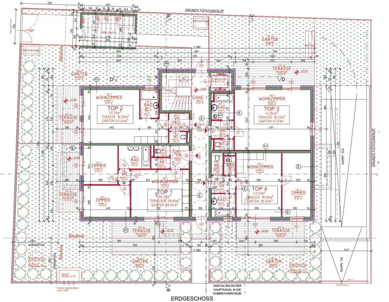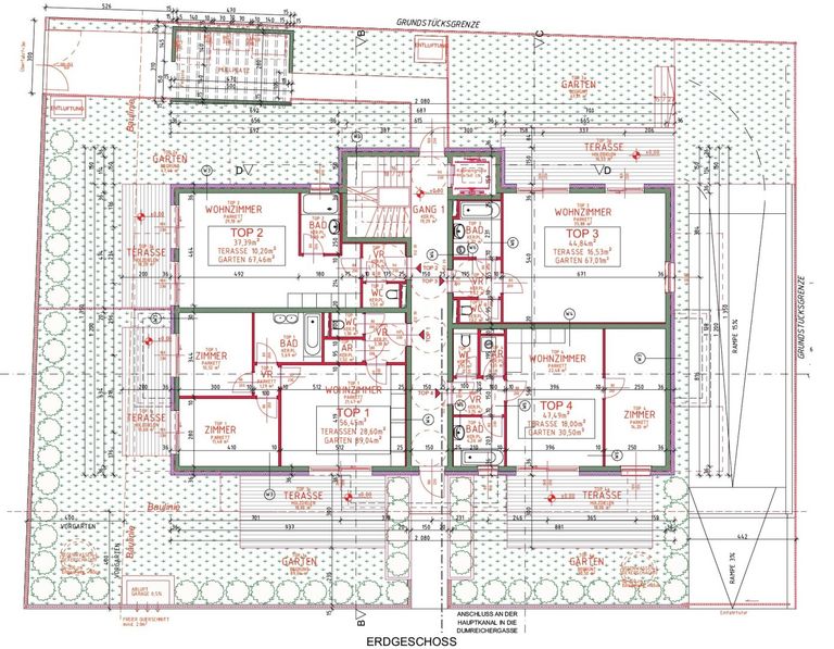 Jede, von den 4 Erdgeschosswohnungen verfügt über einen eigenen Garten.