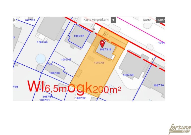 Die Widmung WI 6,5 m, ogk 200 m² bietet ideale Voraussetzungen für die Errichtung eines großzügigen Einfamilienhauses.