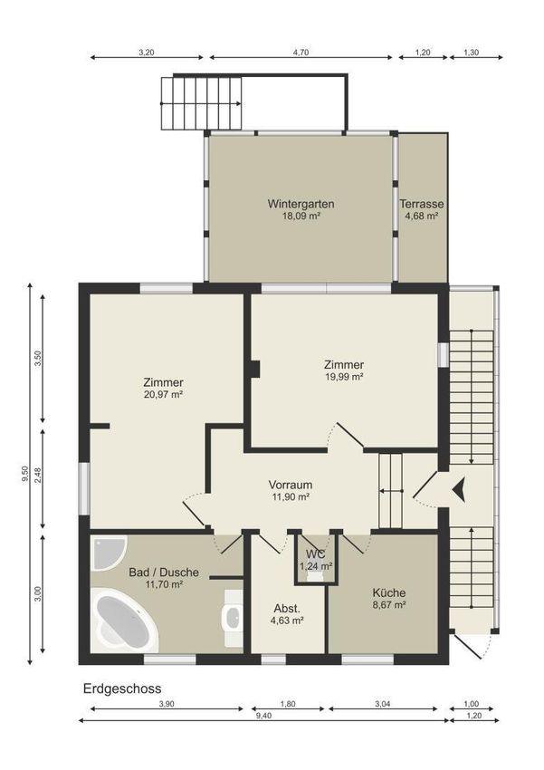 - einen gemütlichen Wohnbereich mit westseitigem Wintergarten,