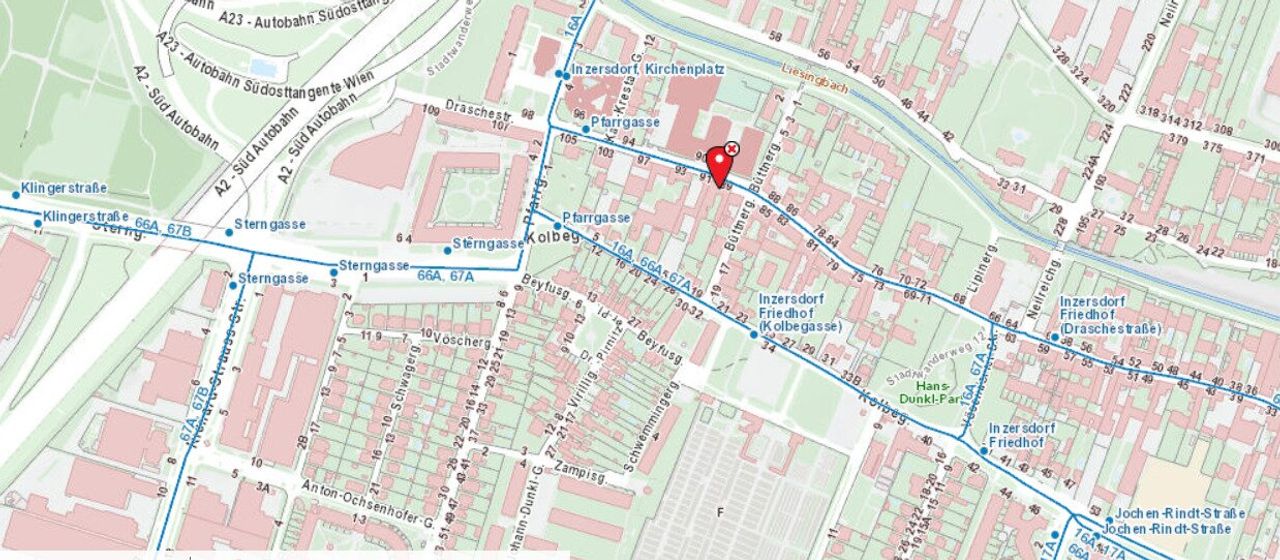 Die öffentliche Verkehrsanbindung ist ausgezeichnet, die Buslinie 66A Richtung Wien Liesing - Reumannplatz ist keine 2 Gehminuten entfernt, sowie in 2 Fahrminuten die Auffahrt A2 Knoten Inzersdorf erreichbar ist.