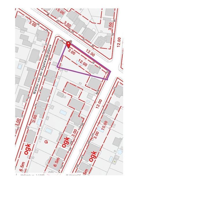 Das Grundstück umfasst 1.202 m² und ist gemäß Flächenwidmung der Bauklasse I (begrenzt auf 6,5 m Höhe) zugeordnet.