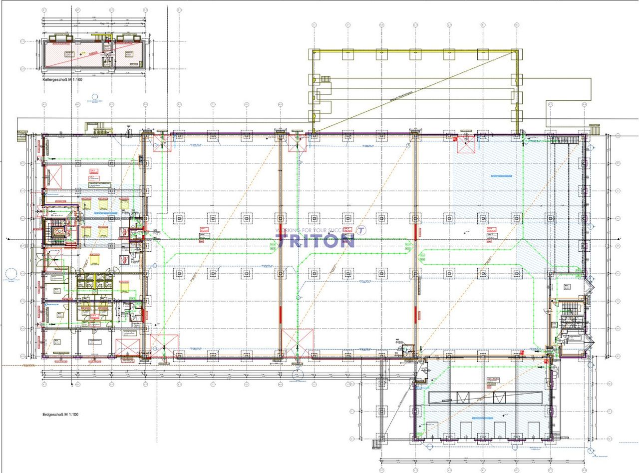 - Bürotrakt: ca. 1.000 m² (2 Ebenen)