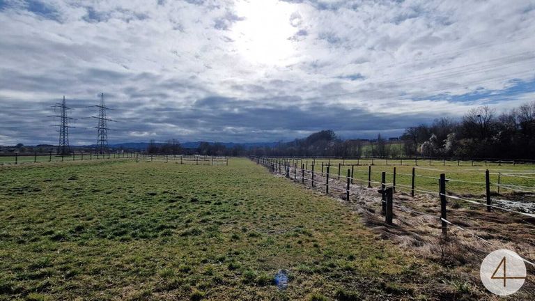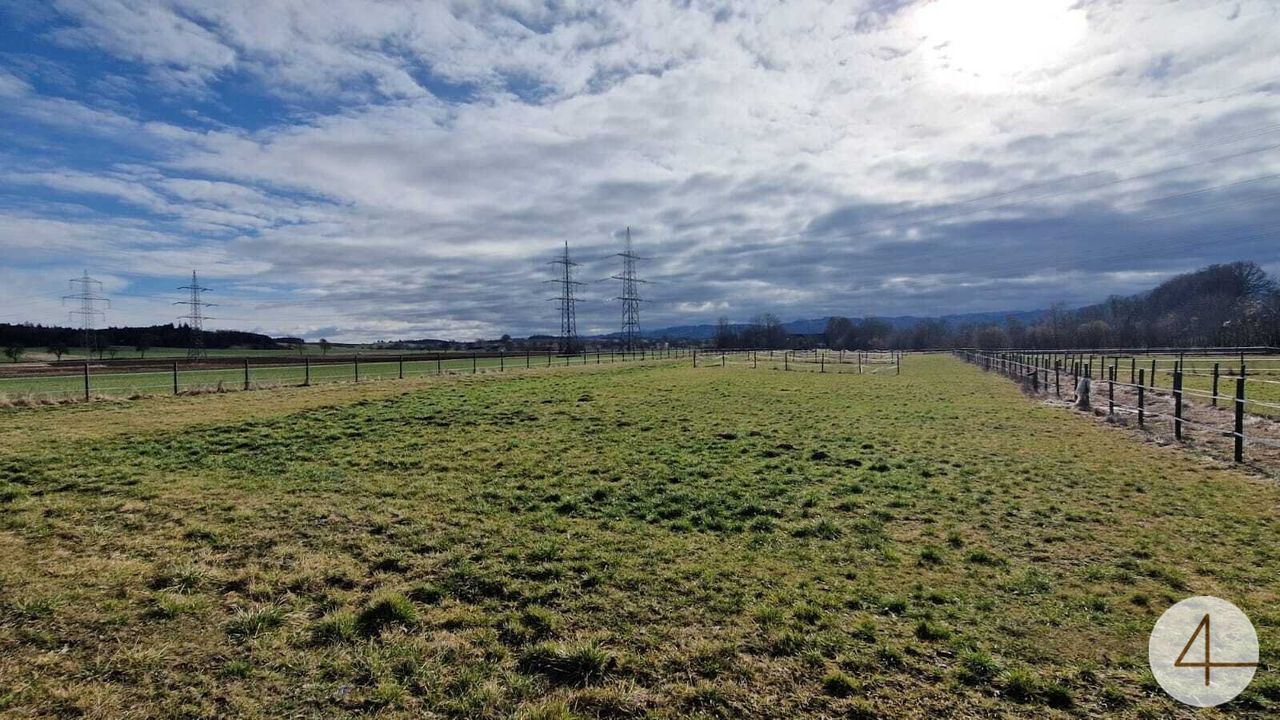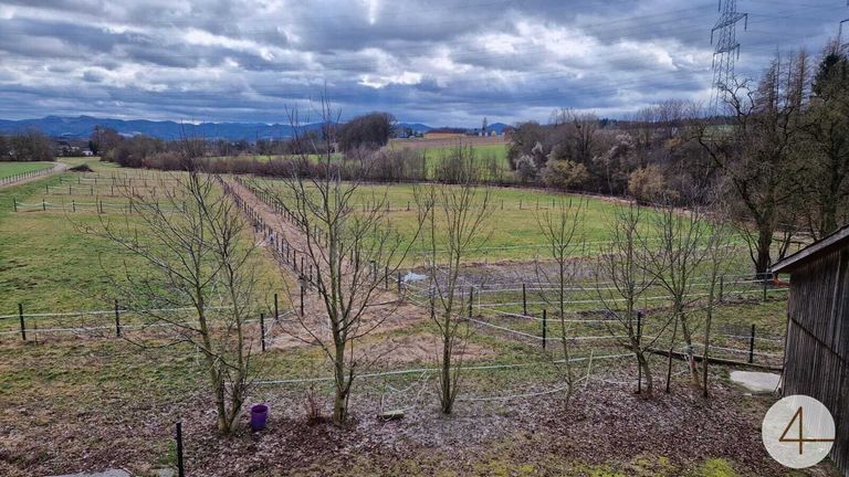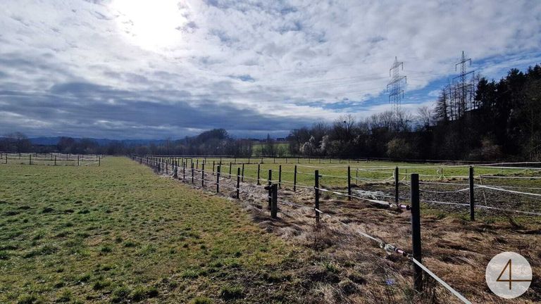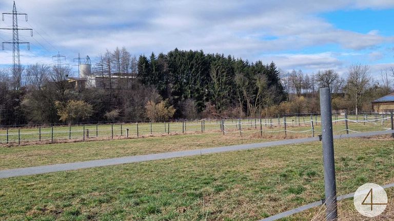 Die landwirtschaftliche Flächen sind gleich neben den Stallungen und als sehr schöne Koppeln und Wiesen im gepflegtem Zustand.