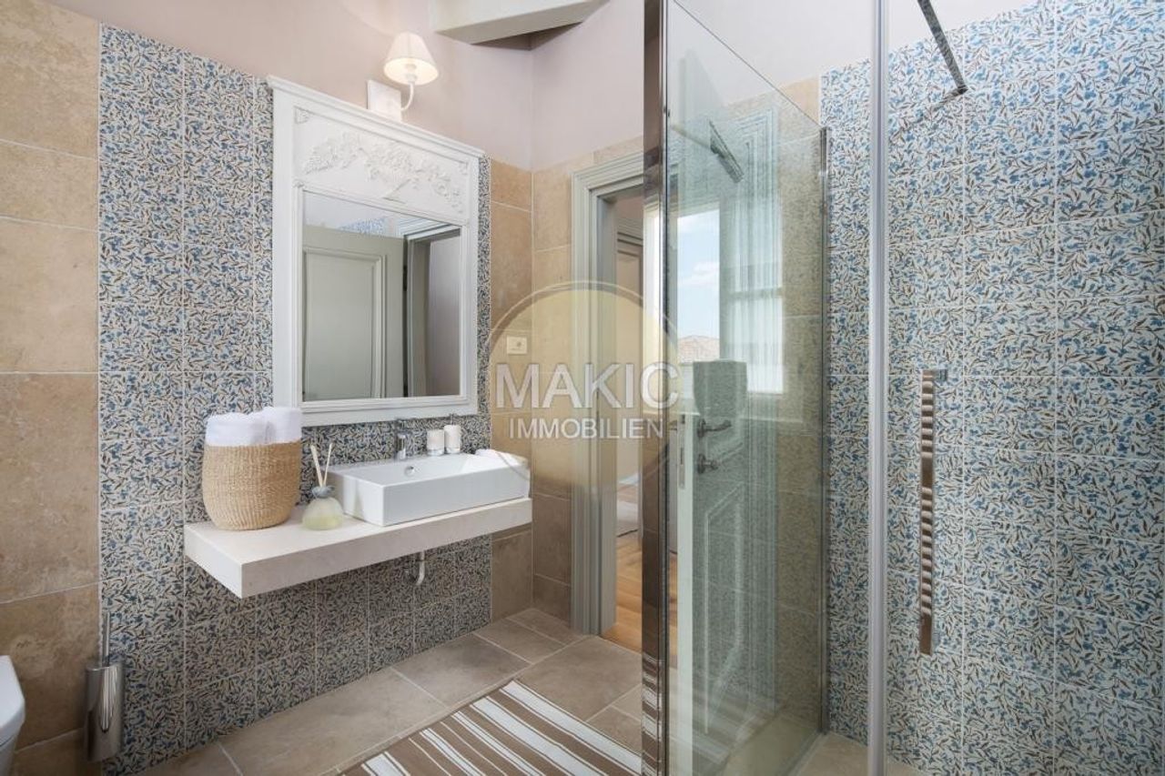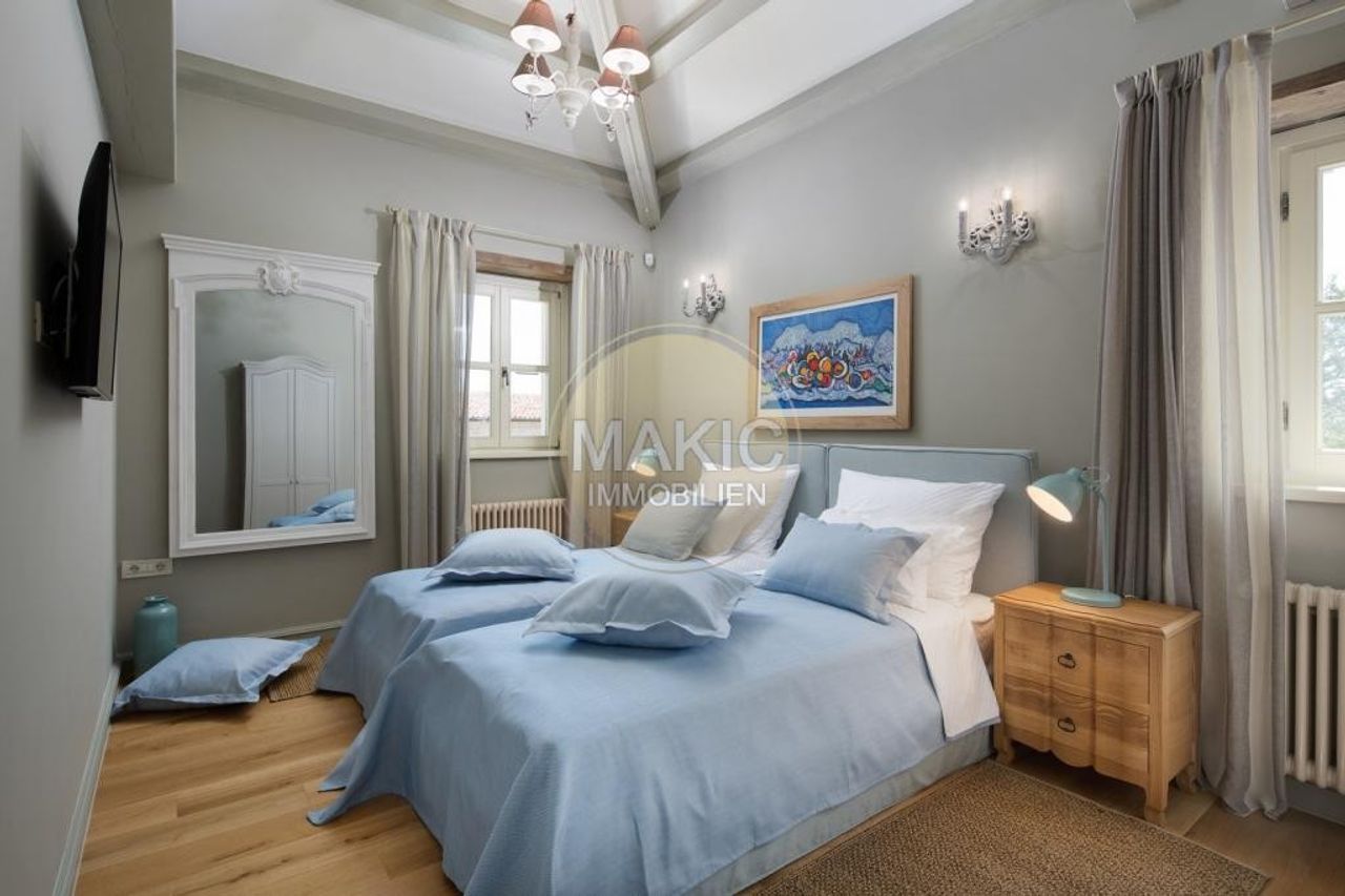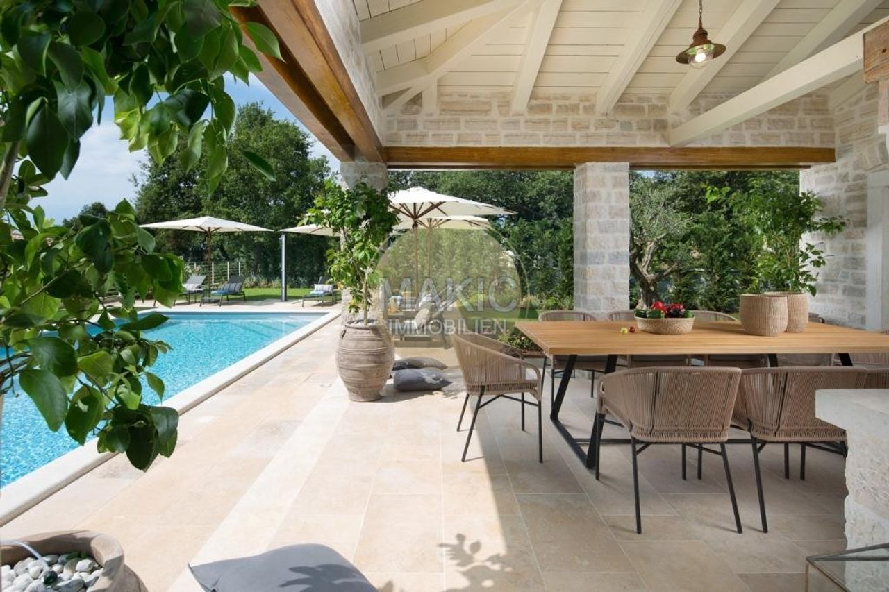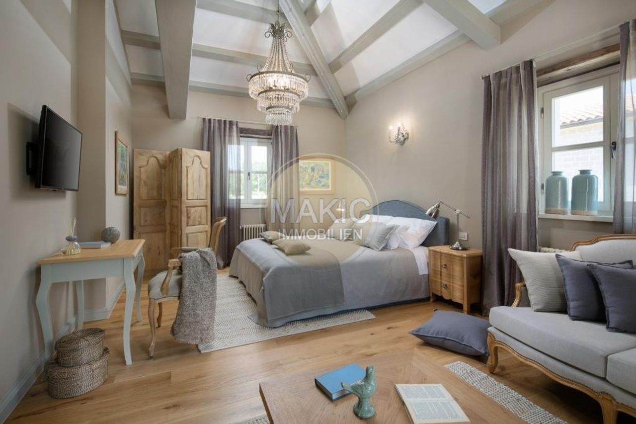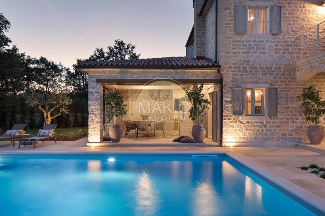 Ladići ist ein kleiner Ort bei Kanfanar, 23 km von Porec und 26 km vom malerischen Rovinj - dem wohl chicsten und derzeit gefragtesten Ort Istriens - entfernt. Hier lässt es sich perfekt auf einer Sonnenliege mit einem interessanten Buch entspannen, mit den Kindern Verstecken spielen, ein köstliches Mittagessen mit Gemüse aus dem eigenen Bio-Garten zubereiten oder bei einer guten Flasche istrischem Wein die märchenhaften Sonnenuntergänge beobachten… Seit kurzem diese exklusive, mediterrane Luxus- und Designervilla zum Verkauf - mit jeweils eigenem Garten und Pool mit Hydromassage-Ecke. Es gibt einen eigenen Autoabstellplatz und eine asphaltierte Zufahrt. Das Objekt eignet sich perfekt...