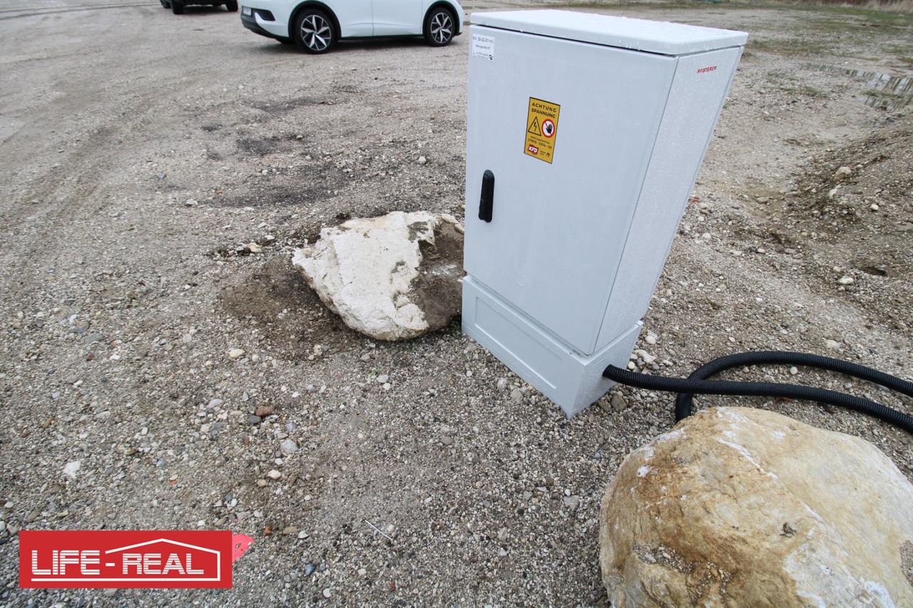 Die Versorgungsleitungen (Strom, Wasser und Kanal) befinden sich an der Grundstücksgrenze.