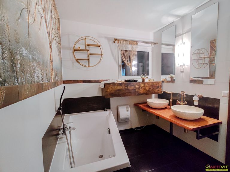 Die Böden sind mit Fliesen und hochwertigen Vinyl ausgeführt.