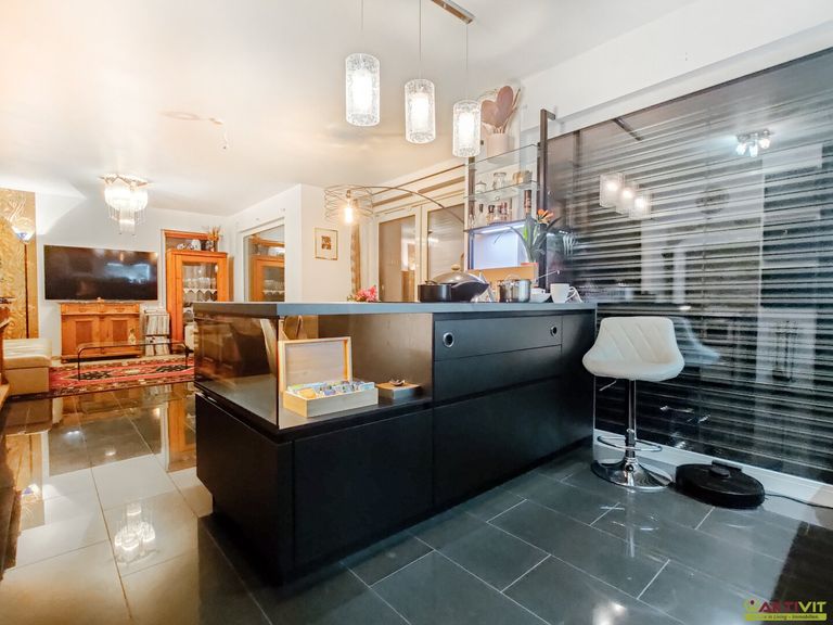 Die Flächen verteilen sich auf ein Wohnzimmer mit offener Küche, 4 weitere Zimmer, zwei Badezimmer und zwei getrennte WCs.