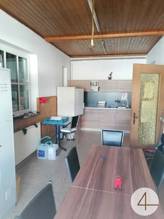 Halle 1 mit Aufenthaltsraum und WC: ca. 420m2 Nutzfläche davon ca. 353m2 beheizt.