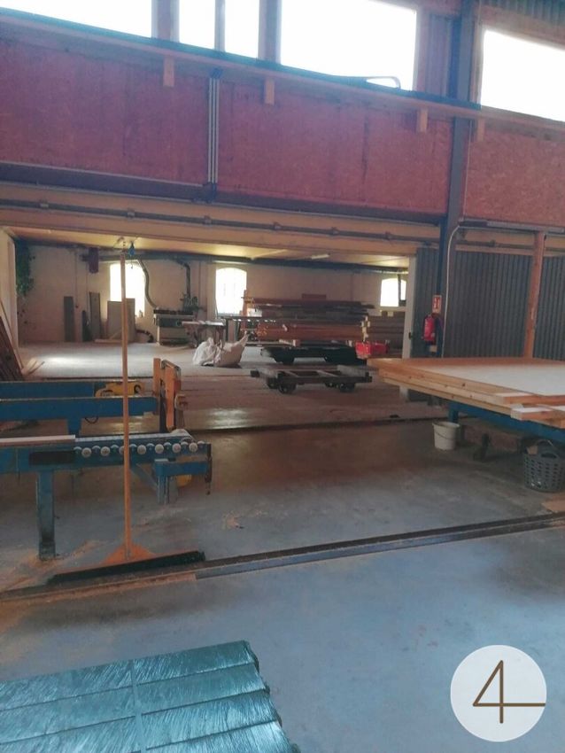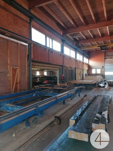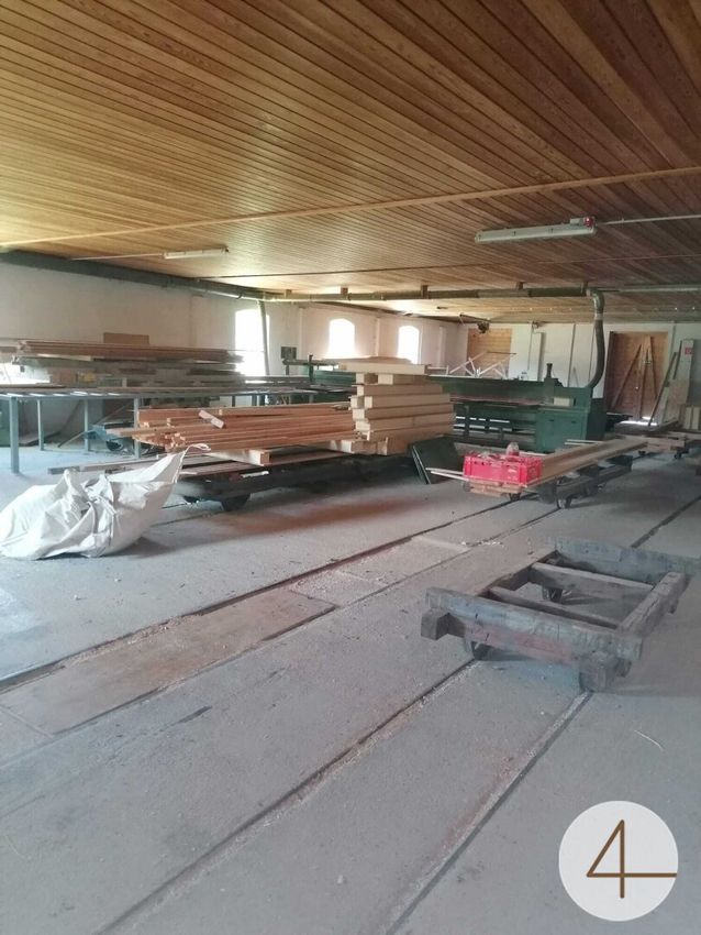 Halle 2 (Sägehalle): ca. 254m2 unbeheizte Halle mit Schienen, unterkellert mit Späne-Bunker.