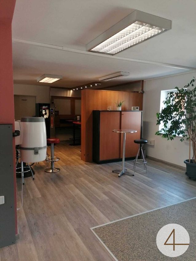 Bistro mit Verkaufsraum ca.150m² Nutzfläche inkl. Teeküche, WC für Personal und straßenseitigen Parkplätzen und 2 Büros mit je ca. 22 m2 Nutzfläche.