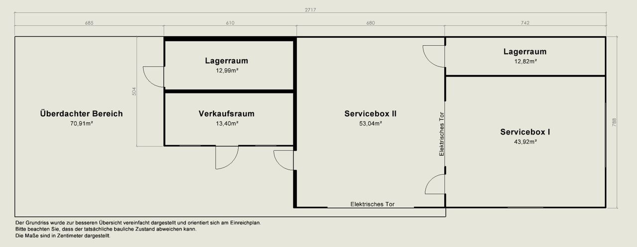 - Lager: 87,50 m² (zusätzliche Lagerflächen im Außenbereich durch Container und ein Zelt)