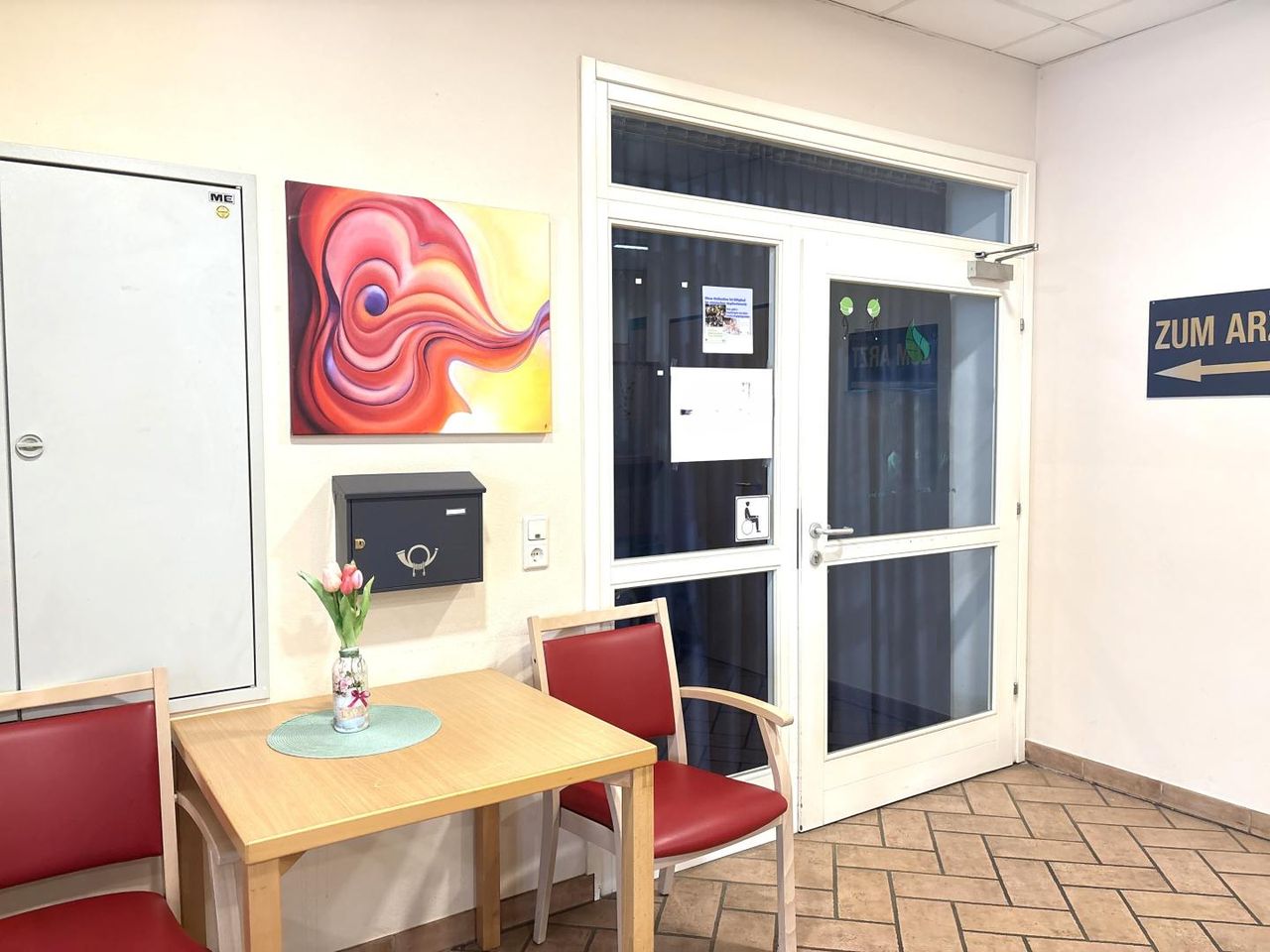Der Haupteingang des Gebäudes wird gemeinsam mit dem angrenzenden Seniorenheim genutzt. Von dort gelangt man über einen separaten Zugang direkt in die Ordination.