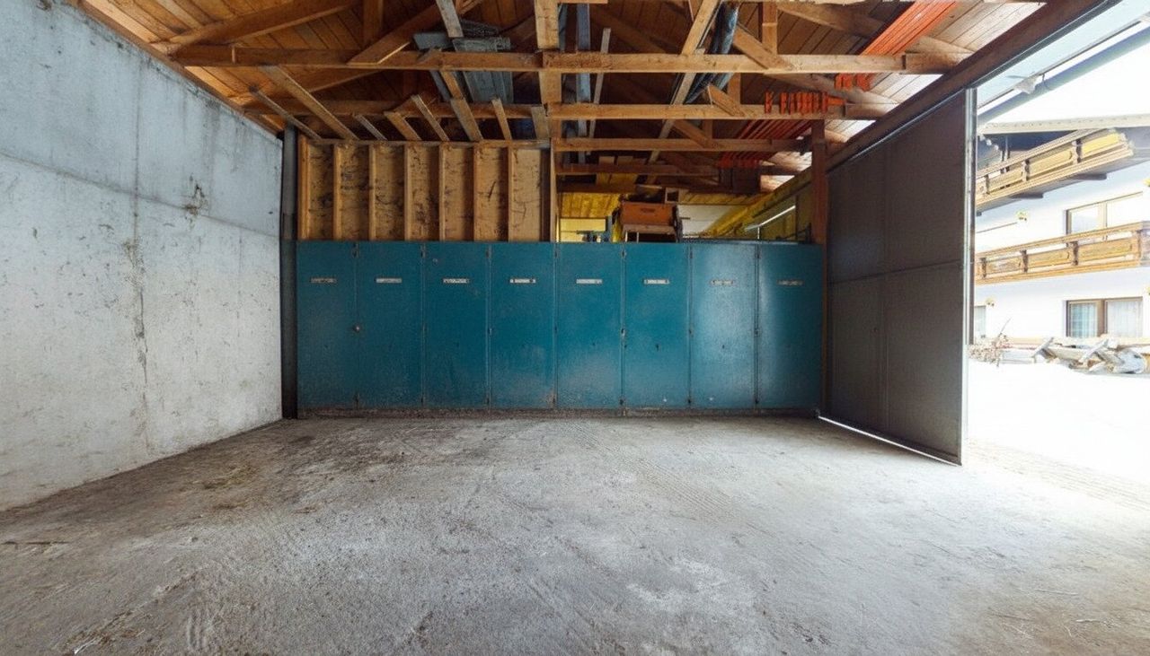 Ein zusätzlicher Mehrwert ist die bereits vorhandene technische Infrastruktur: Die PV-Anlage verbleibt bei den LKW-Garagen, wobei hierfür ein neuer Stromanschluss über die Kelag herzustellen ist. Die Wechselrichter und Batterienbefinden sich bereits beim Gebäude. Zudem verbleibt der in den beiden rechten Garagen fest montierte Kompressorebenso wie das große, fest verbaute Notstromaggregat, das aktuell auch mit dem Heizsystem verbunden ist, im Objekt.