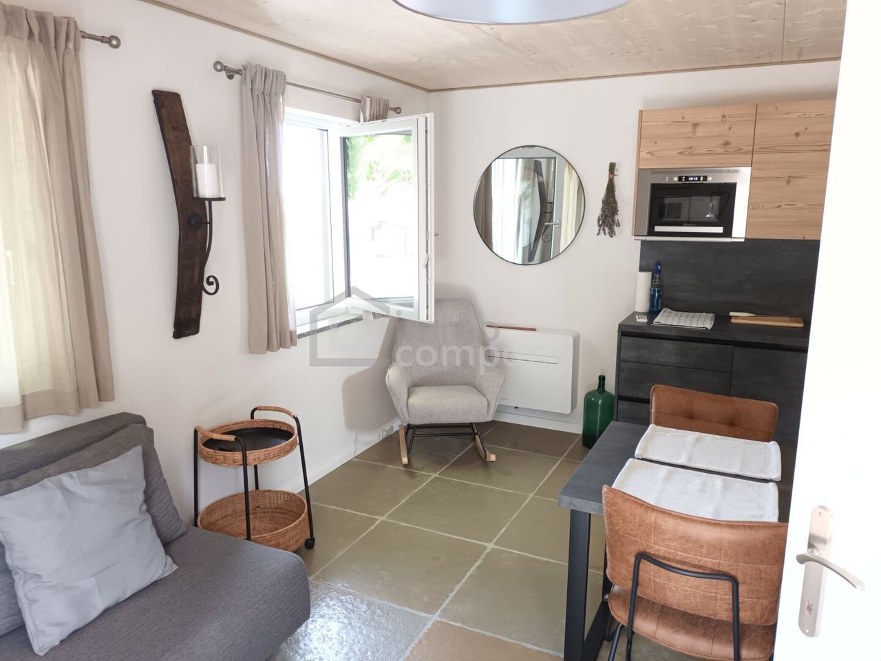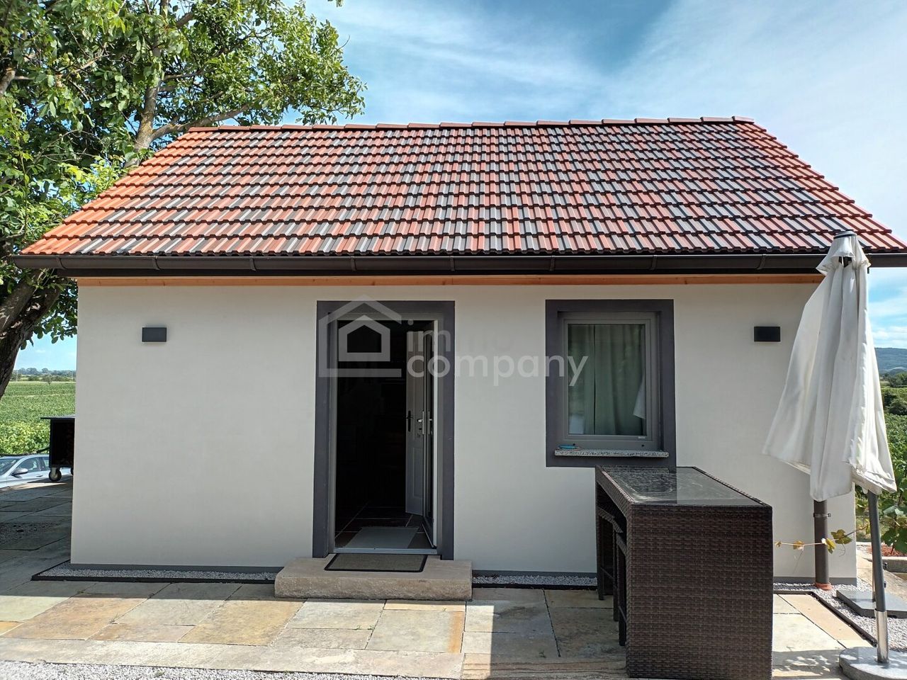 Neben dem Keller steht ein eingerichtetes Haus, das dazugehört.